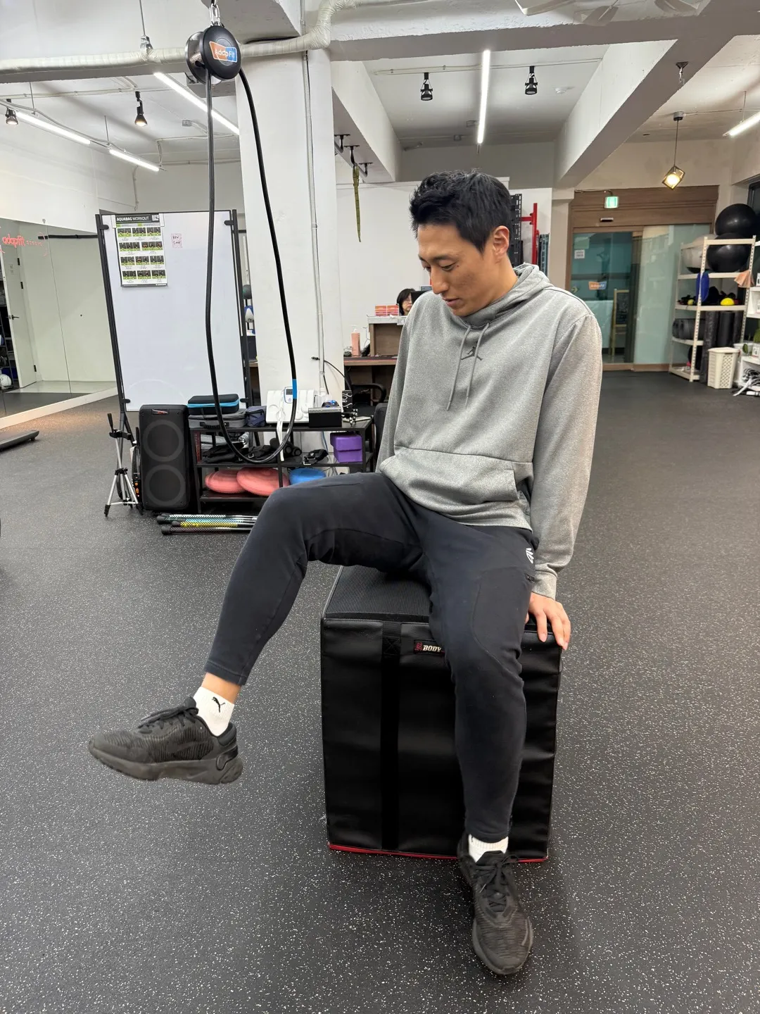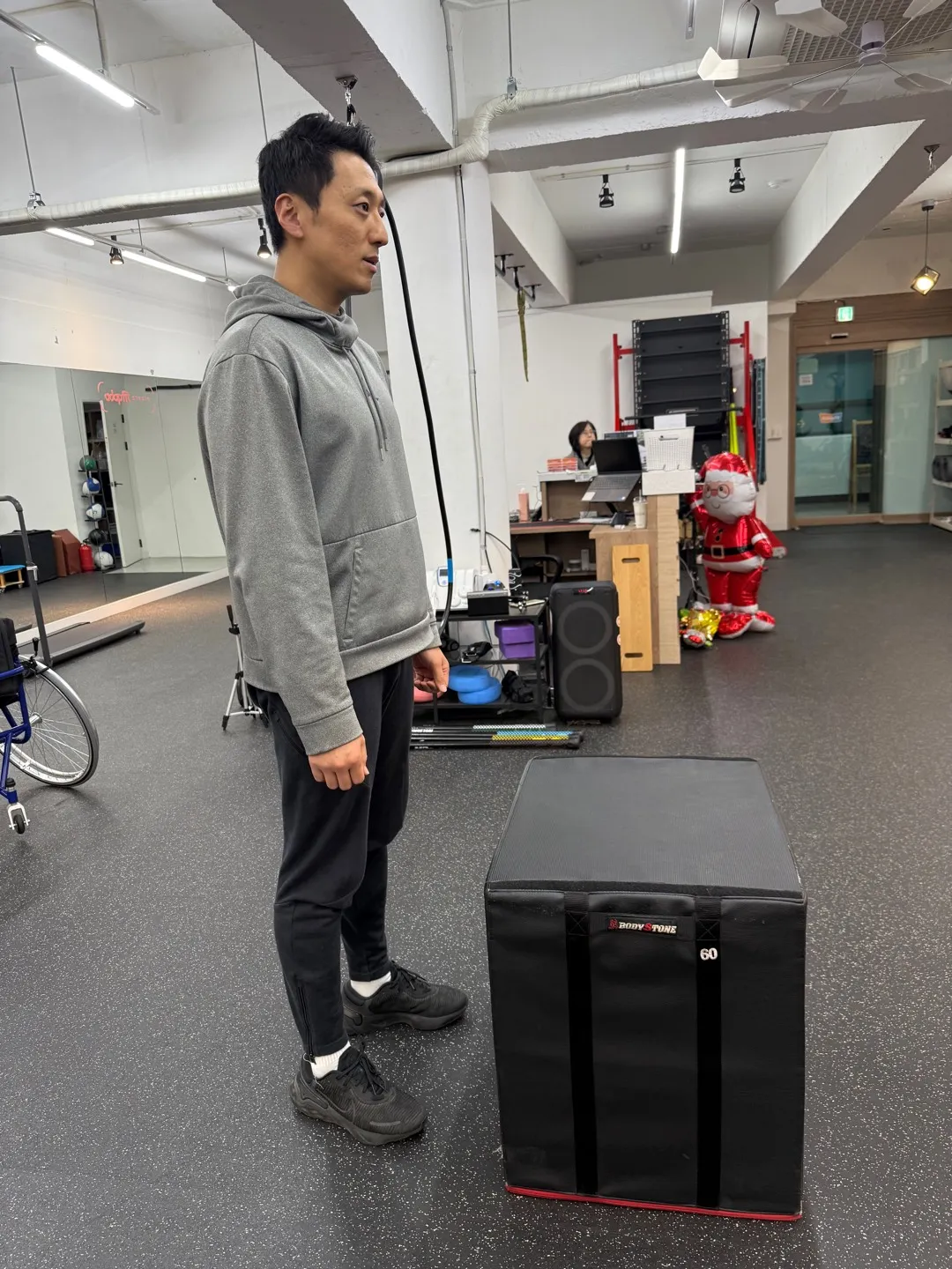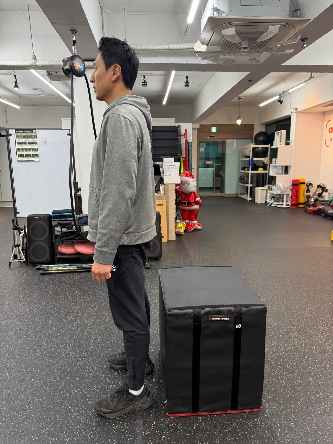 바닥에서 두발로 동시에 점프하여 정해진 높이 박스에 올라가면 개수 카운트