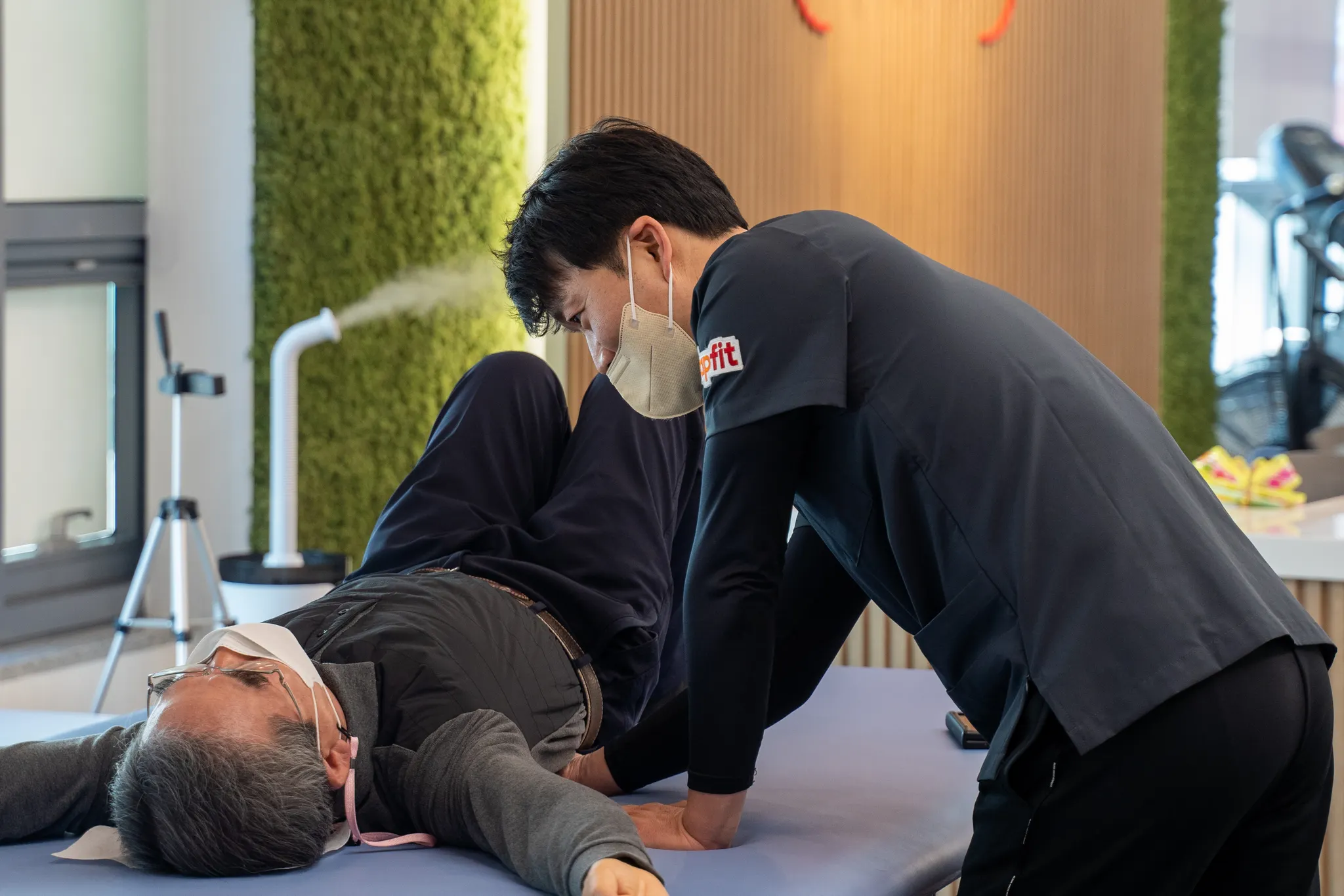 구성 장비 : 리프트온, 전동매트, 워킹패드, 소도구 3종(덤벨, 짐볼, 아쿠아백), 천장 설치형 풀업바, TRX/하네스/밴드 등